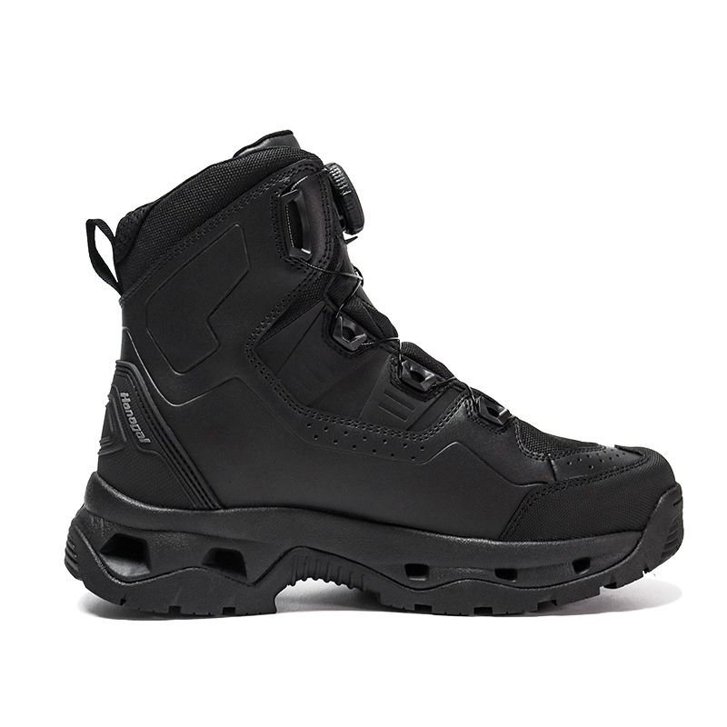 Arna dtáirgeadh sa tSín ag monaróir gairmiúil agus monarcha, tá Buataisí Póilíní Lining Sandwich Breathable ar struchtúr líneáil ceapaire chun cinn a fheabhsaíonn sreabhadh aeir agus a luathaíonn galú taise, ag laghdú go héifeachtach tógáil teasa agus tuirse coise. Seachadann an outsole uachtair agus cobhsaí treisithe cosaint chomhsheasmhach agus greim ar dhromchlaí uirbeacha agus lasmuigh, ag tacú le gluaiseacht sábháilte agus muiníneach. Ag comhcheangal feidhmíochta feidhmiúil le cuma glan, gairmiúil faisin, coinníonn Hanagal caighdeáin cháilíochta dian agus praghas iomaíoch á thairiscint, rud a fhágann gur rogha tosaíochta na buataisí póilíneachta seo do cheannaitheoirí domhanda atá ag lorg soláthraí iontaofa fadtéarmach. Ina theannta sin, tá pointí díola seo a leanas ag an gcineál seo de bhuataisí póilíneachta: