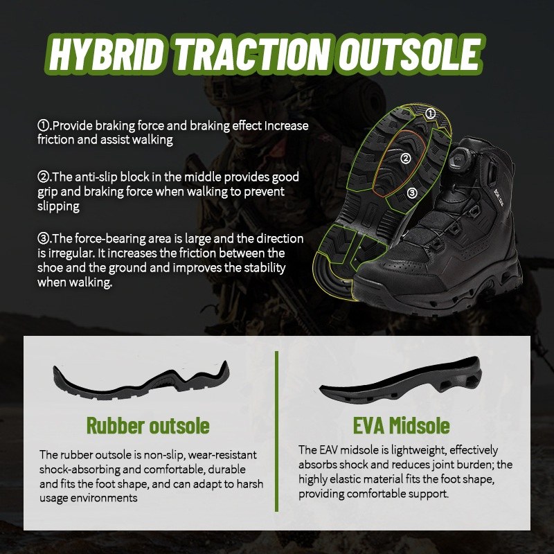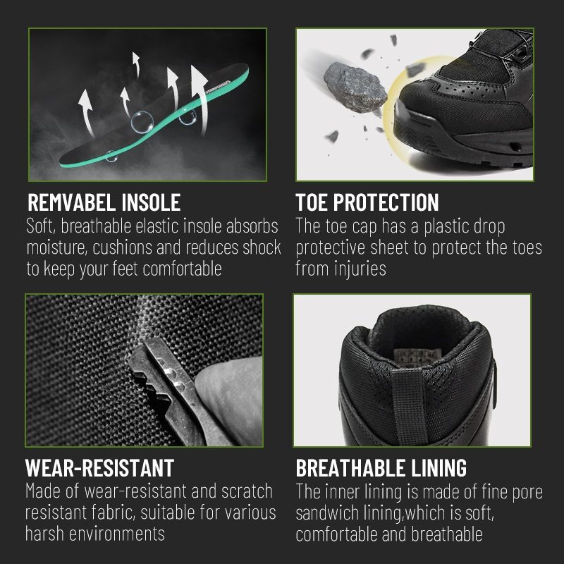 Tá na Buataisí Póilíní Lining Sandwich Breathable deartha le haghaidh uaireanta fada dualgas agus timpeallachtaí oibre éilitheach. Le líneáil mogalra ceapaire, soláthraíonn siad breathability den scoth agus feidhmíocht wicking taise chun do chosa a choinneáil tirim agus compordach le linn caitheamh leathnaithe. Tugann an tógáil garbh tosaithe tacaíocht agus cosaint iontaofa, agus cuireann an t-outsole ard-tarraingthe in oiriúint go maith do dhromchlaí éagsúla. Seol fiosrúchán chugainn le haghaidh tuilleadh eolais.