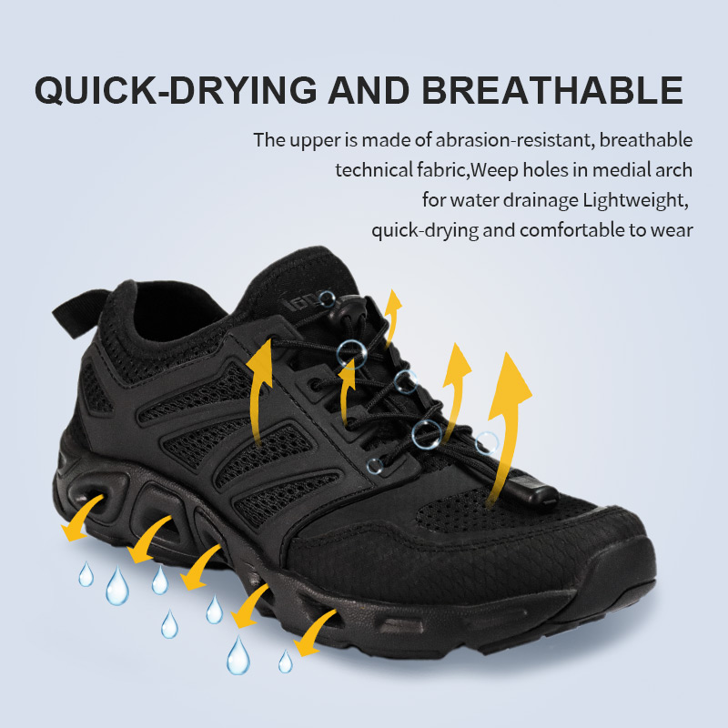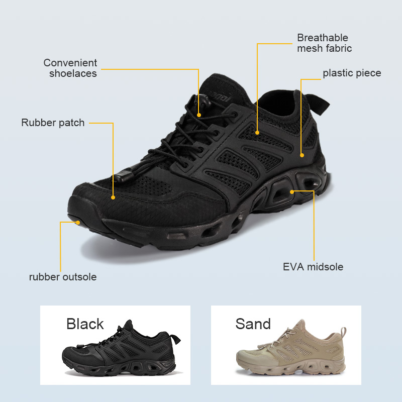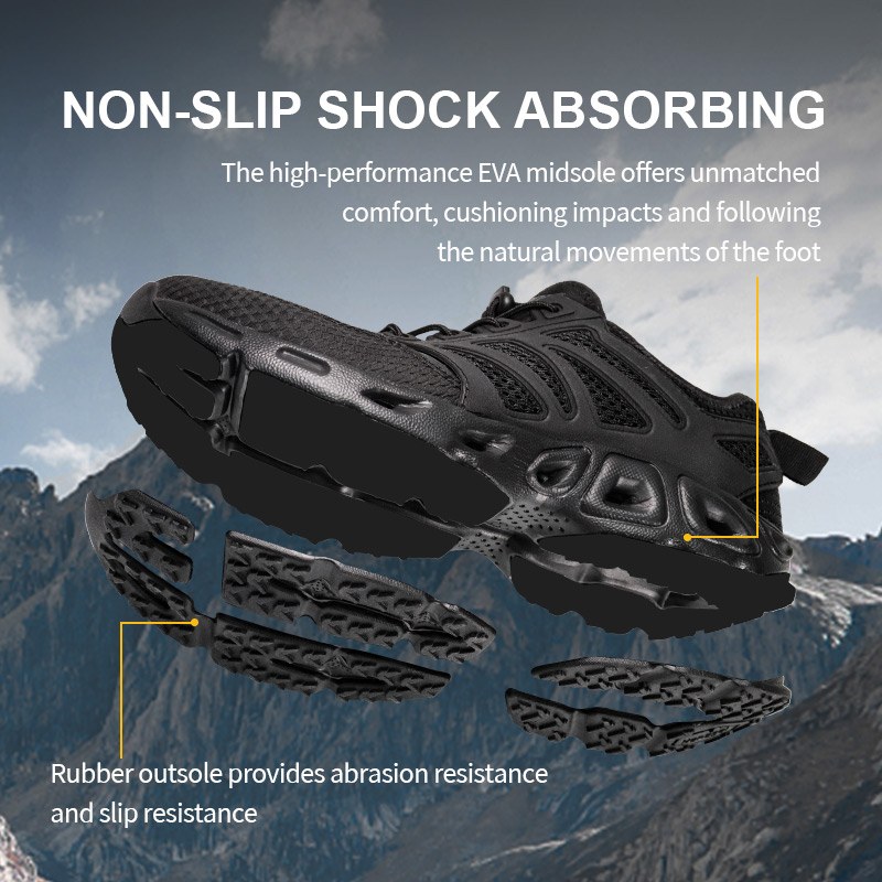 Tógtar Bróga Trekking Absorbing Shock EVA don rian - fliuch nó tirim. Le hábhair mear-thriomaithe agus calafoirt draenála sa áirse, déanann sé uisce a shealú go tapa nuair a théann tú ó shruth go cruinniú mullaigh. Glais paiste sÚil rubair i cobhsaíocht, agus seachadann an midsole EVA bog, turraing-ionsú chompord faoi chois. Agus an outsole rubair garbh? Tógtha chun greim a fháil ar rud ar bith - carraig, láib, gairbhéal scaoilte. Tá sé amphibious, lúfar, agus tógtha chun bogadh leat.