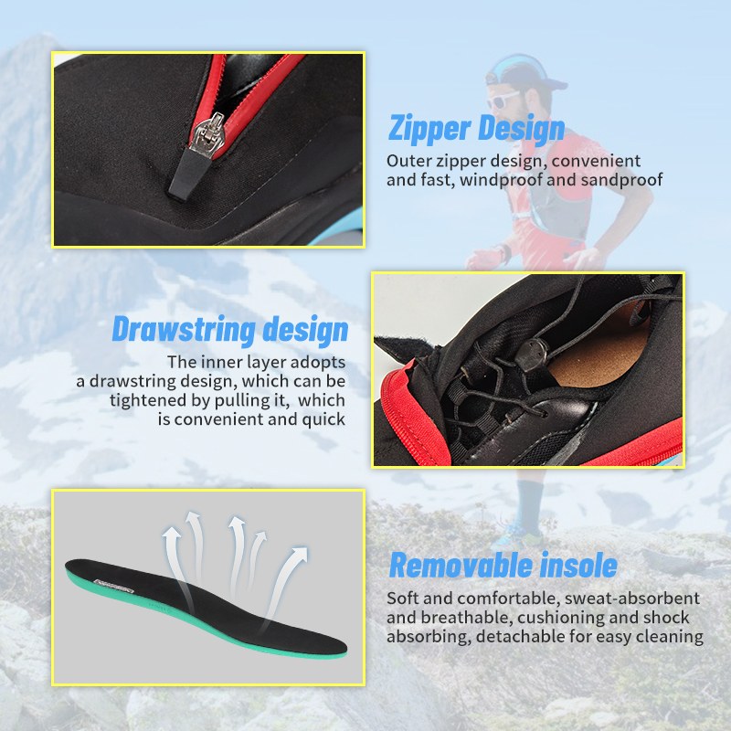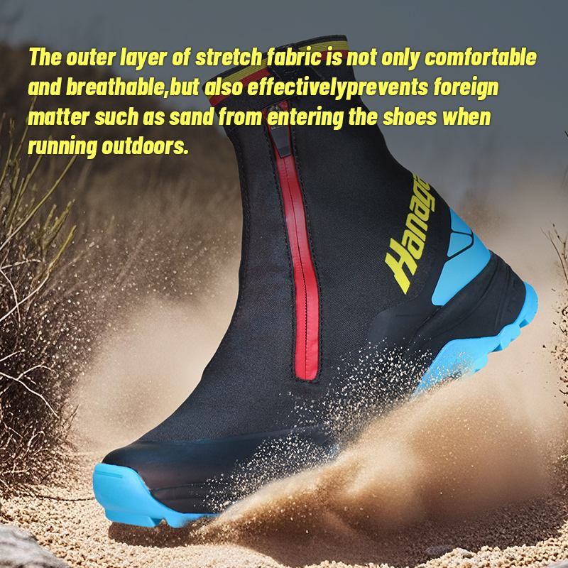 Ní hamháin go bhfuil an ciseal seachtrach fabraic stráice compordach agus breathable, ach cuireann sé cosc ​​​​go héifeachtach ar ábhar eachtrach mar ghaineamh dul isteach sna bróga agus iad ag rith lasmuigh.