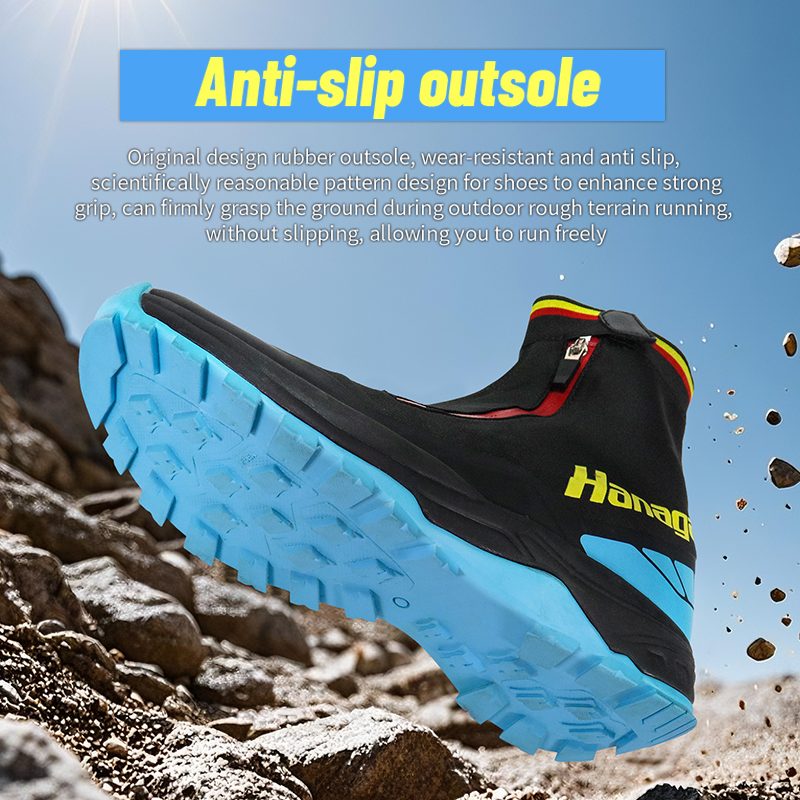 Is féidir le dearadh bunaidh outsole rubair, caitheamh-resistant agus frith-duillín, dearadh patrún eolaíoch réasúnta do bhróga chun greim láidir a fheabhsú, an talamh a thuiscint go daingean le linn rith tír-raon garbh, gan sleamhnú, rud a ligeann duit rith go saor.