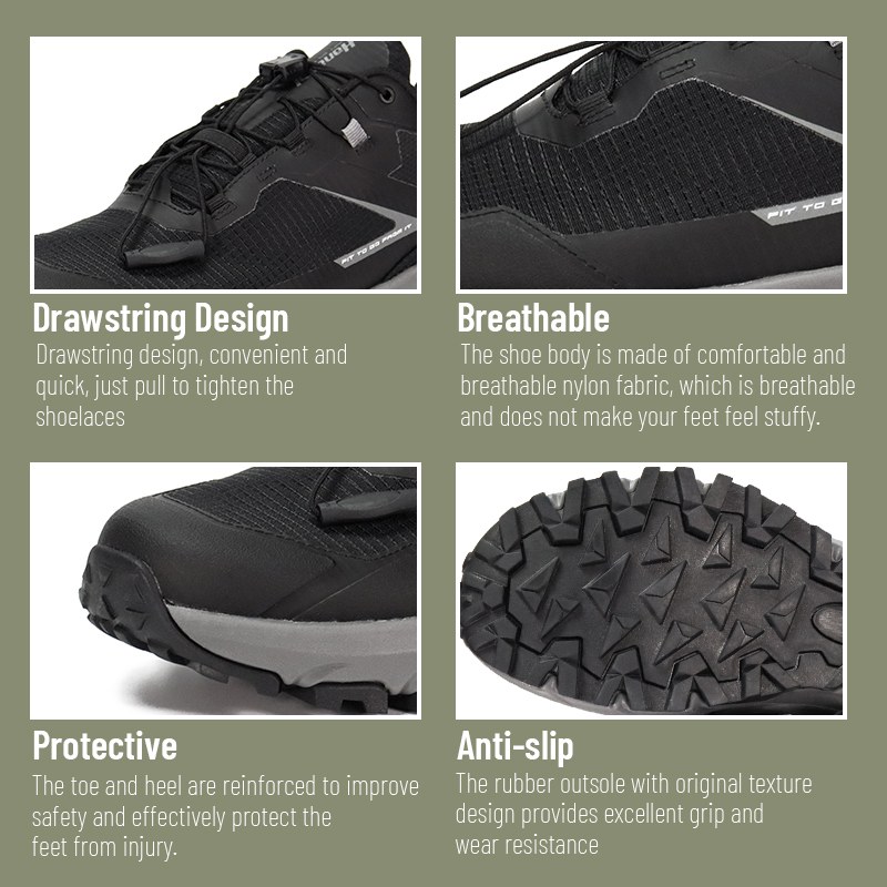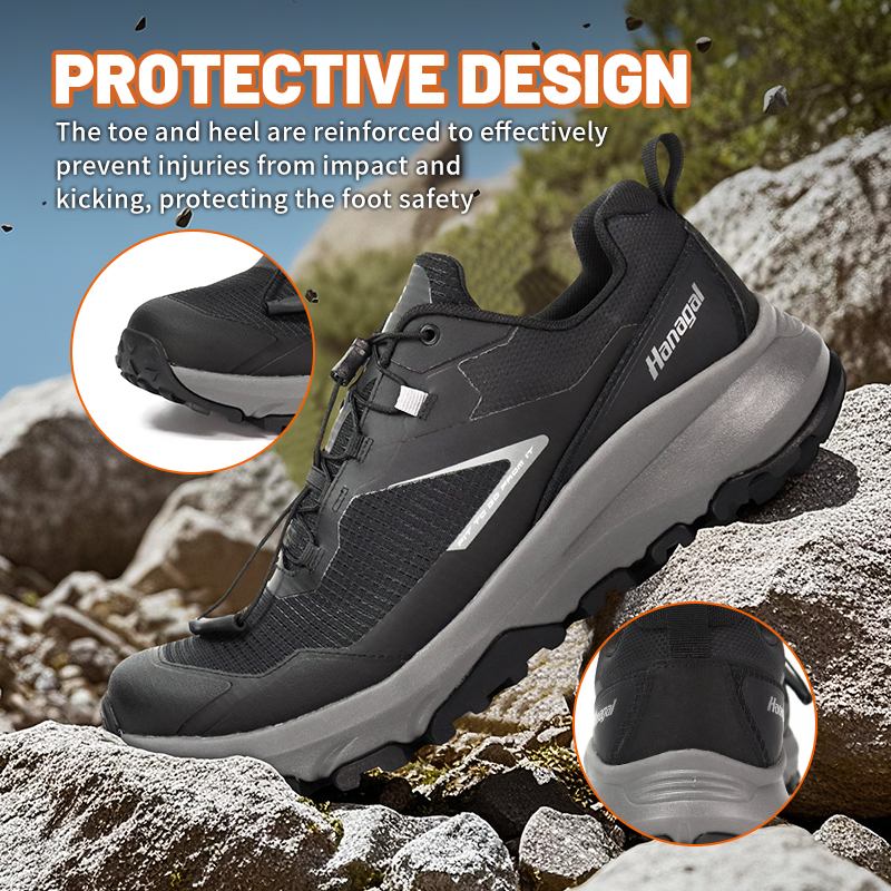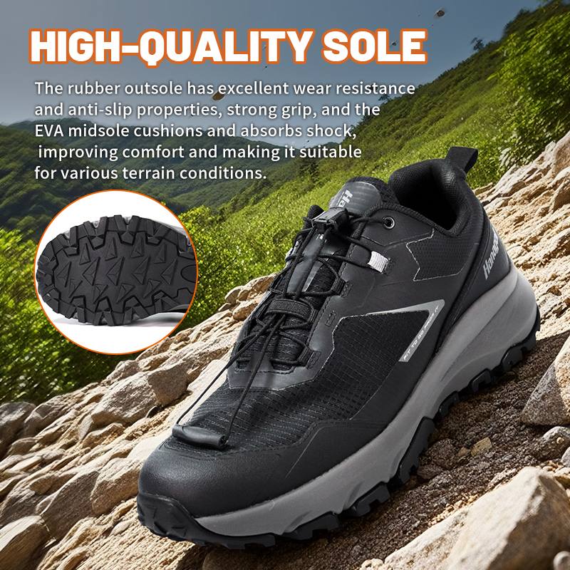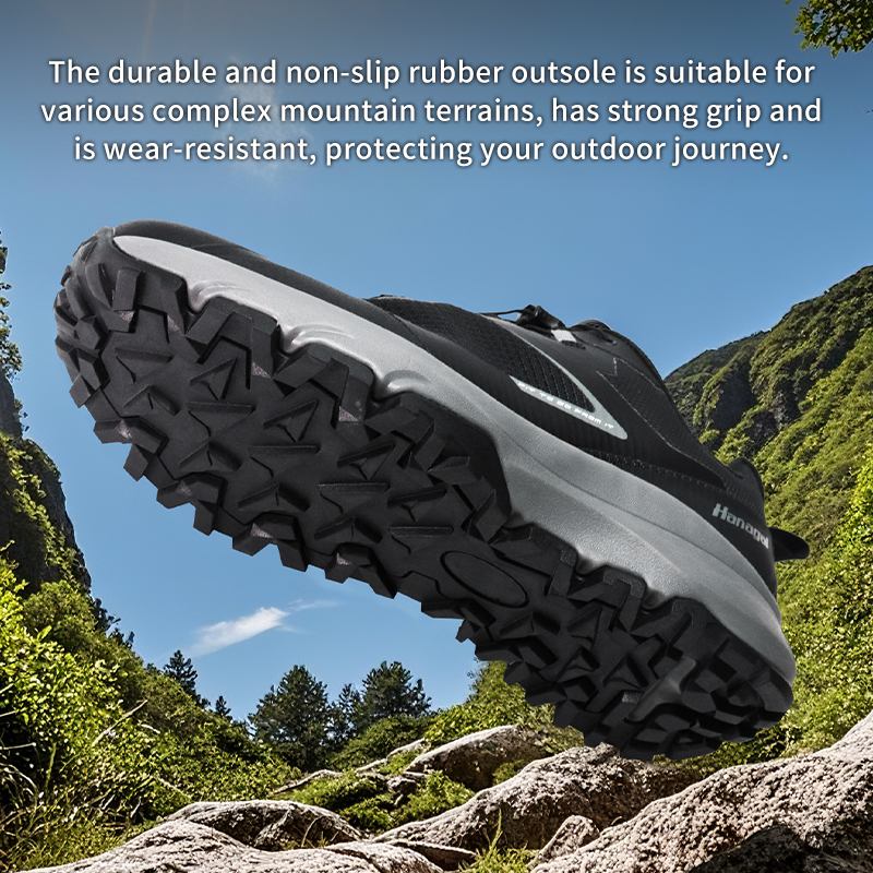 Tá an t-outsole rubair durable agus neamh-duillín oiriúnach do gach tír-raon sléibhe casta, tá greim láidir aige agus tá sé resistant a chaitheamh, ag cosaint do thuras lasmuigh.