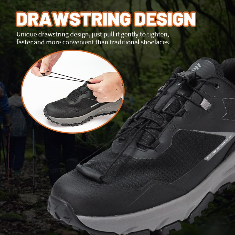 Dearadh sreangán tarraingthe uathúil, tarraing go réidh é chun níos doichte, níos tapúla agus níos áisiúla ná na laces bróg traidisiúnta.
