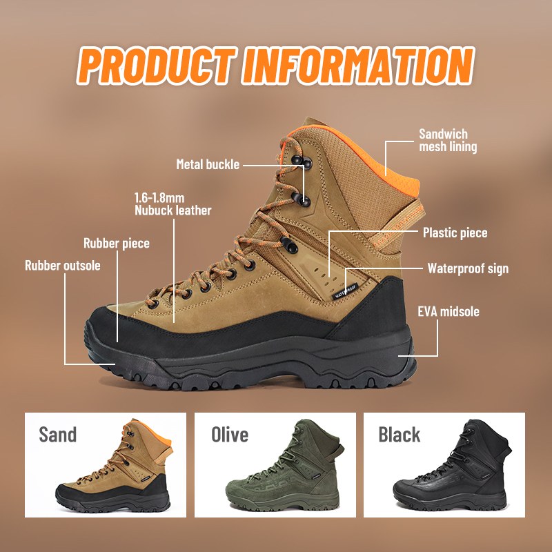 Tá na Bróga Hiking Uiscedhíonach Frith-duillín Láidir Grip seo ar fáil le saincheaptha i dathanna, ábhair, agus sonraí, le MOQ de 800 péire, atá oiriúnach le haghaidh comhoibrithe branda agus soláthar grúpa. Agus tá buntáistí seo a leanas ag na bróga trekking seo: